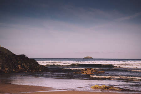 Beautiful view over the sea from Polzeath, Cornwall Vintage Retro Filter.