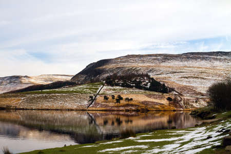 Reflection of the hill at Dove stone reservoir