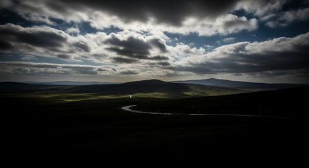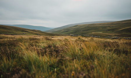 Scenic landscape of rolling hills and grassy meadows