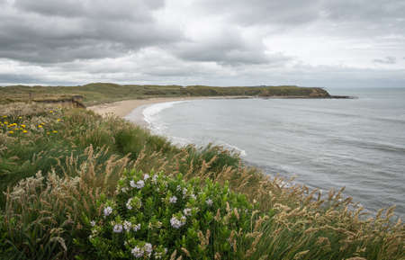 Cocklawburn Beach from the Dunes, a rural beach within Northumberland Coast Area of Outstanding Natural Beauty. High quality photo