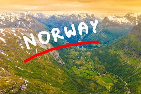 Tourism vacation and travel. Fantastic view on Geirangerfjord and mountains landscape from the Dalsnibba Plateau viewpoint, Norway Scandinavia.