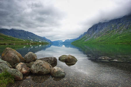 Reinheimen National Park, Norway. Lake Ovstevatnet In Mountains Landscape In Early Summer. Mountain Range In One Of The Largest Wilderness Areas Still Intact In Western Norway