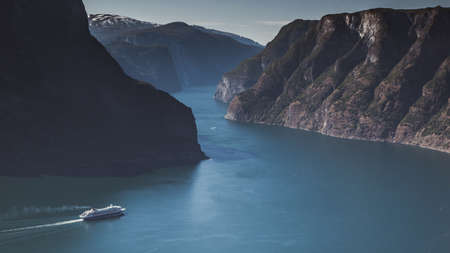 Aurlandsfjord fjord landscape, Norway Scandinavia. National tourist route Aurlandsfjelle