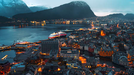 Alesund, Norway - June 19, 2019: Moored Ships Port Near Alesund Island. Summer Day.