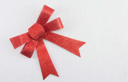 Red Christmas bow for presents on sparkling background