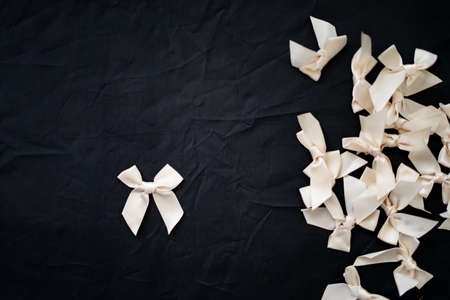 White silk ribbons isolated on the black background.