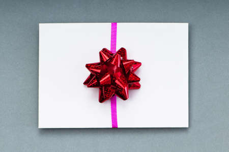 Close-Up of a Note Card with Elegant Ribbon Bow on White Background. Perfect for Greetings, Gifts