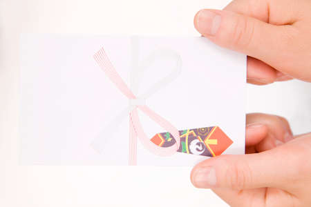 Holding Japanese envelop for gift /horizontal