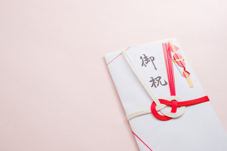 Traditional Japanese envelope for money gift to celebration, Present wrapping gift translation: Congratulations