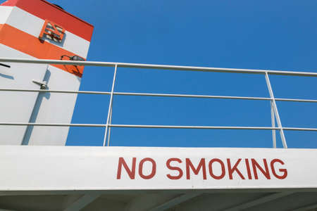 Inscription in English No smoking on board the ferry in the Bay of Kotor in Montenegro