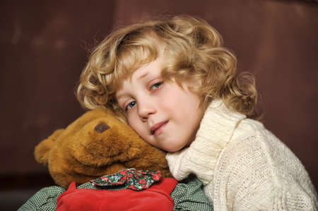 Little cute boy with his teddy bears