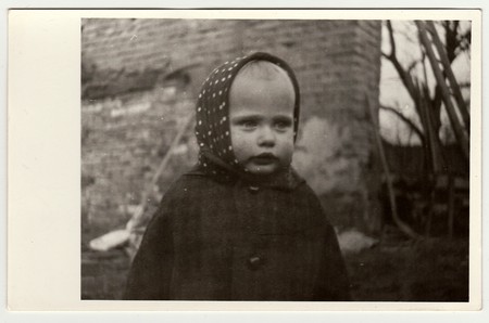 THE CZECHOSLOVAK REPUBLIC, CIRCA 1942: Vintage photo shows a small girl wears bandanna, circa 1942.