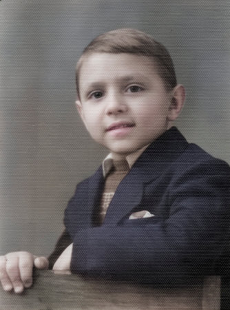 A vintage, half-turned portrait of an eight-year-old boy. Retro photo, 1966