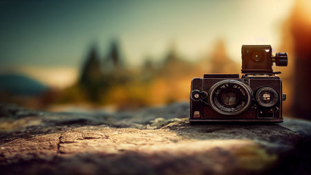 Old retro vintage camera photography copyspace. Obsolete nostalgia style.