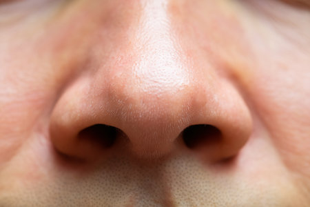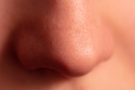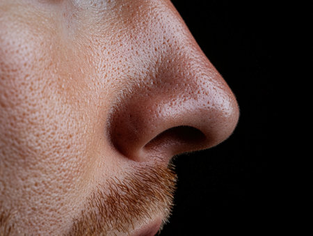 Close-up view of skin texture on the nose, highlighting facial care challenges in personal grooming