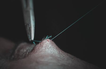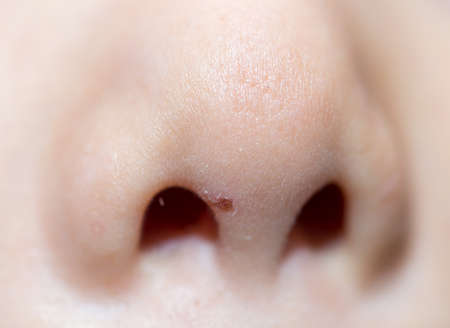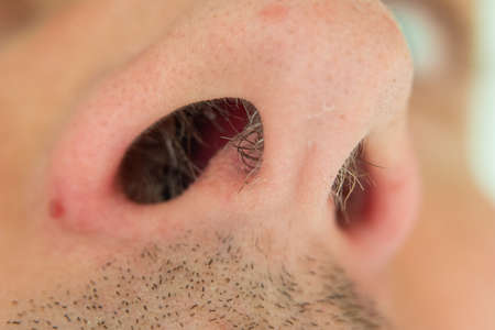 Caucasian male unkempt nose hair follicles macro close up shot. Close up shot, unrecognizable.