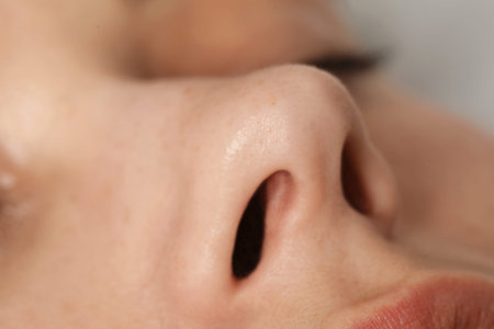Woman with normal nasal septum, closeup view