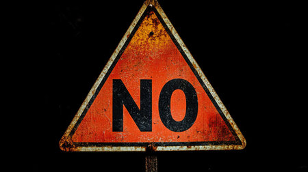Hand holding a red no sign symbolizing refusal or disagreement in a neutral setting
