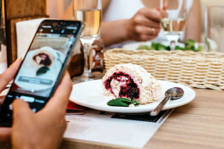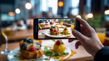 Food photography with a Smartphone in a coffee shop. High quality illustration