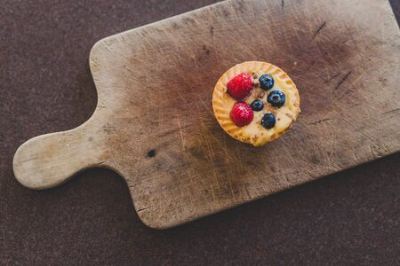 berries custard and chocolate pastries on cutting board, sweet treats and desserts