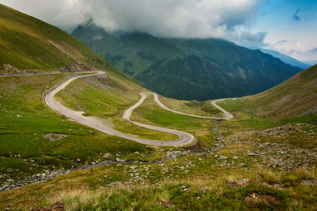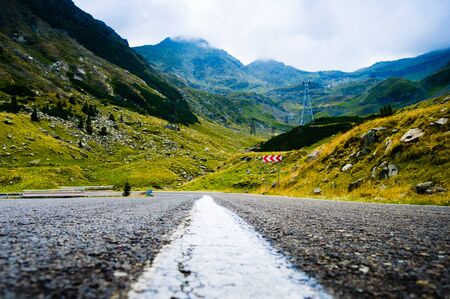 Mountain road in the mists of a rainy summer day generating a landscape of mystery and enchantment. The Transfagarasan or DN7C is the second highest paved road in Romania.