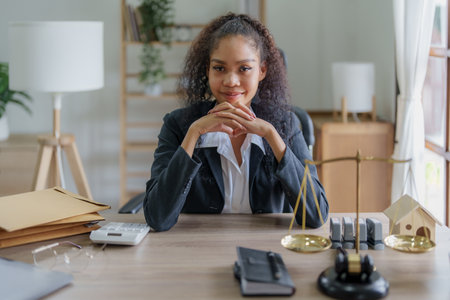 Portrait of a female lawyer, African Americans working at the office to study the case before litigation with the parties