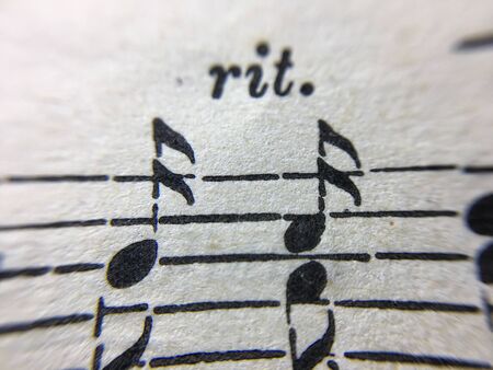 Aged sepia effect of a macro closeup shot of musical notes written on paper notes in traditional sheet music format