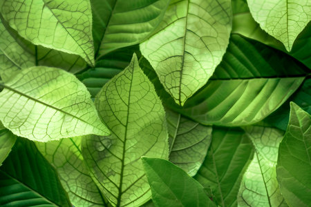 Discover the beauty of lush green leaves featuring intricate textures and vibrant coloration. Perfect for nature lovers and ecological themes.