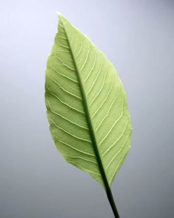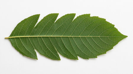 Fresh green leaf on a white background, showcasing vibrant textures and details, perfect for eco friendly concepts and nature themes