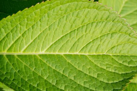 Beautiful green hydrangea leaves. Close-up. Pattern. Sunny day.