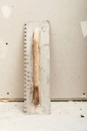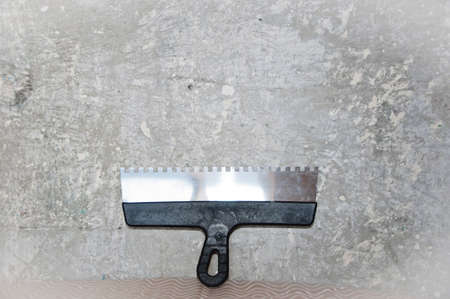 House renovation tools and objects concept. Trowel for smoothing cement, indoor shot.