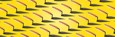Triangle trowel (building spatula) pattern over yellow background