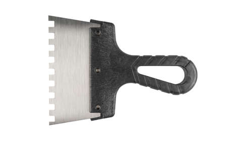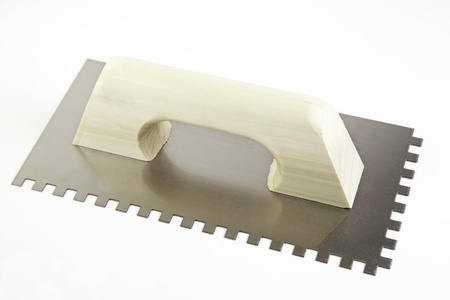 New trowel for tiles isolated on white background. Notched trowel isolated over white.