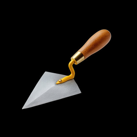 A high-quality metal trowel featuring a wooden handle, perfect for construction and gardening tasks. Isolated on a black background to highlight design and function.