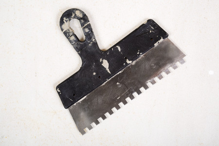 Construction notched trowel is a tool for tiles installation work