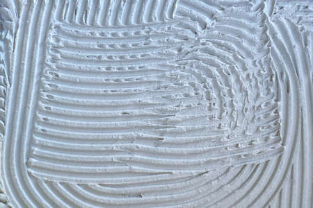 Tile adhesive notched trowel patterns. Adhesive background.