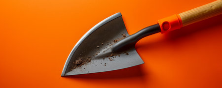 Close up of a Dirty Garden Trowel on a Vibrant Orange Background Gardening and Agriculture Tool Concept AI Generative