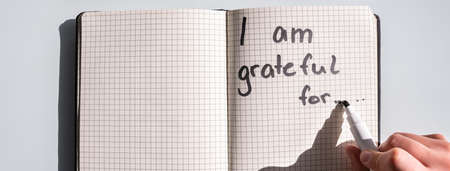 Gratitude Journal Concept. Writing I Am Grateful In Journal