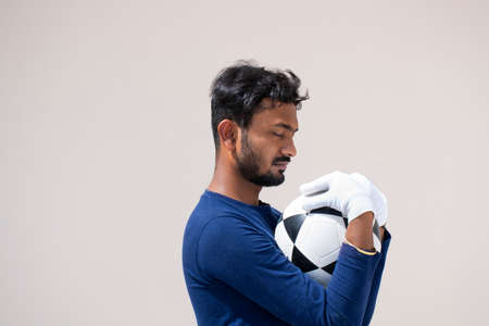 Goalkeeper catch the ball when defensive on goal during a night football match