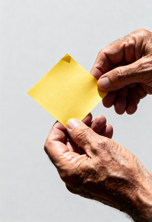A hand holding a vibrant yellow sticky note against a backdrop of colorful notes, symbolizing organization, creativity, and effective communication in the workspace.