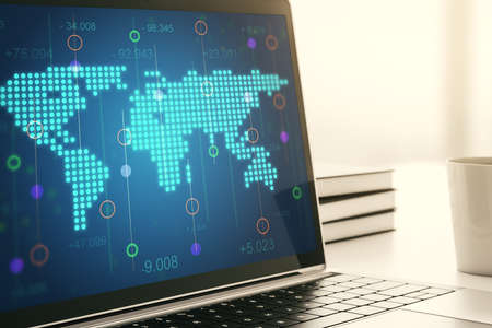Laptop with stock market data on screen, stock market data concept