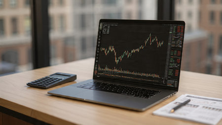 Minimalist Financial Analysis on Laptop with Stock Market Charts.