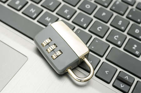 closed padlock on the laptop keyboard data protection concept internet censorship. High quality photo