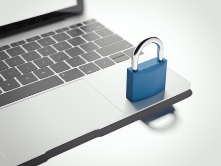 Closed padlock on a modern laptop. 3d rendering