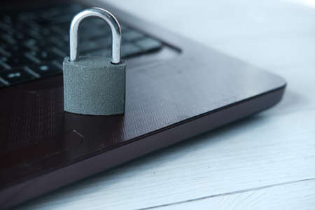 internet safety concept with padlocked on laptop computer keyboard