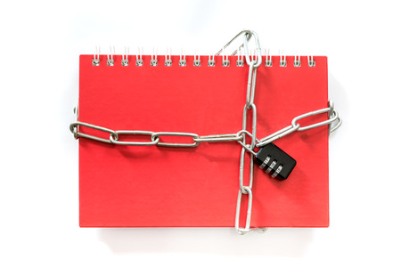 notebook for writing wrapped with an iron chain closed with a lock with keys concept information protection data protection