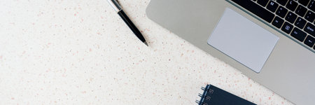 top of the table with notebook pencil and laptop keyboard panorama, panoramic, horizontal