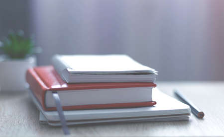 notebooks without inscriptions on the table. copy space, mock up