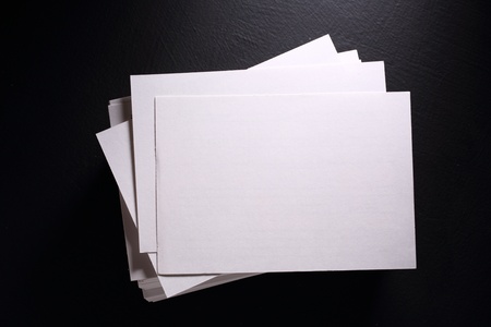 Stack of white paper cards on black