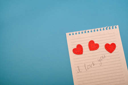 a piece of paper with the inscription I love you. and three hearts.